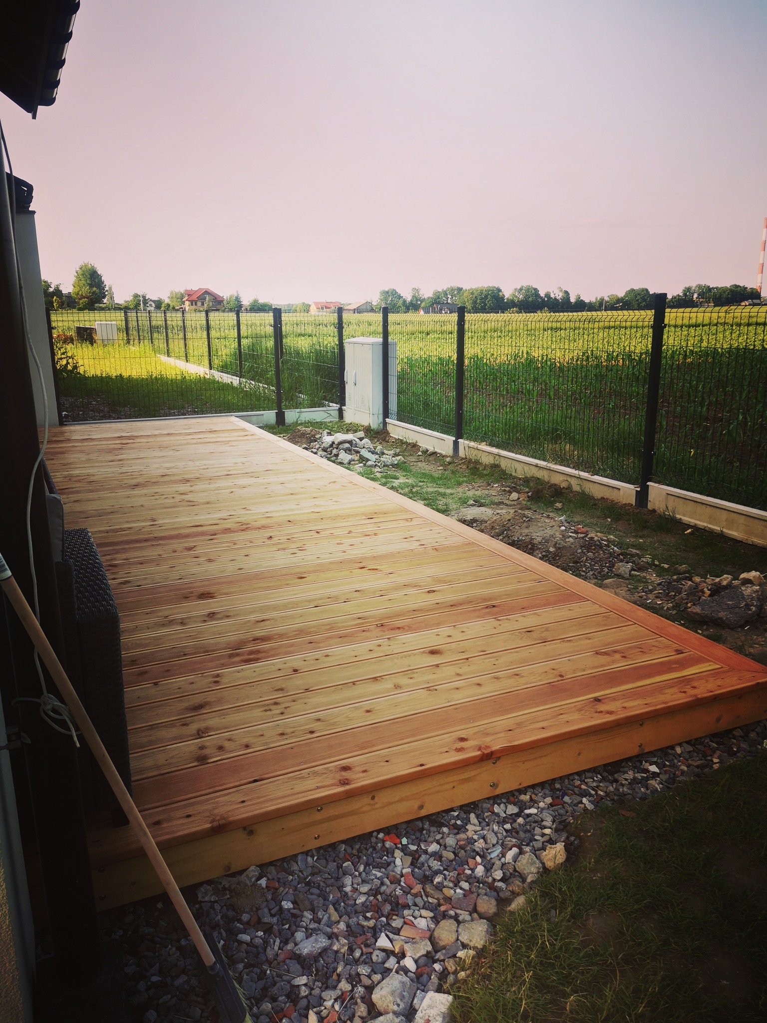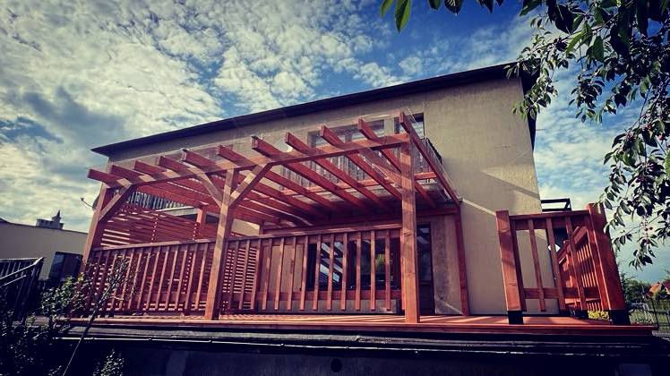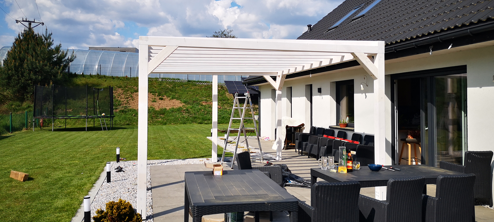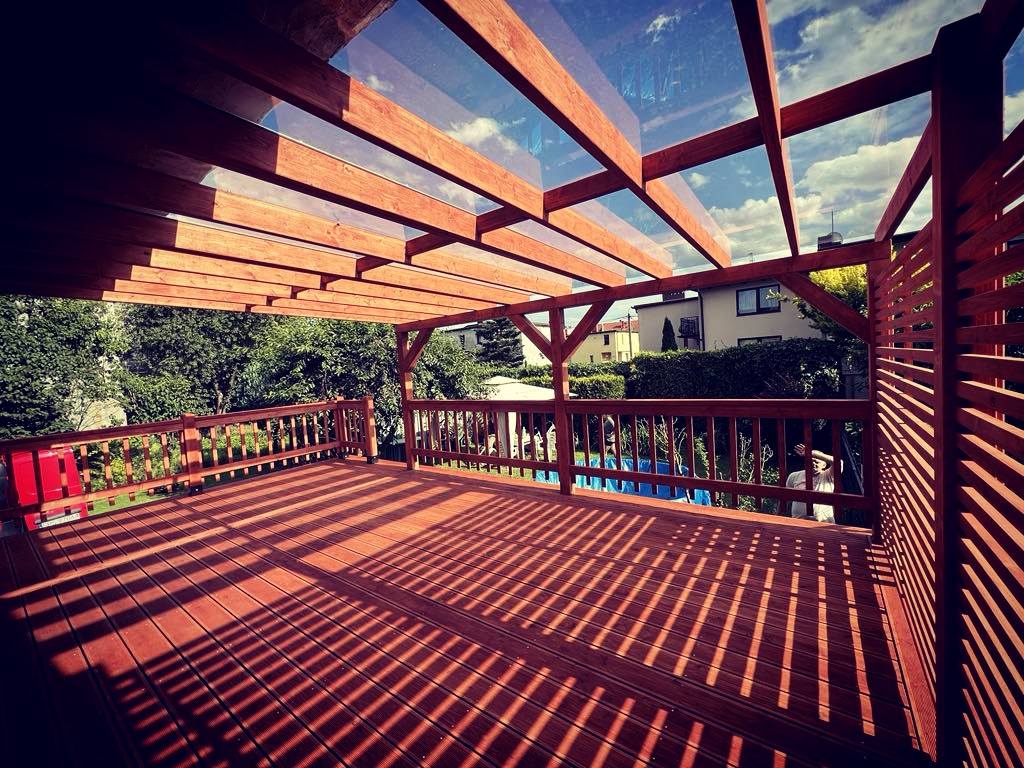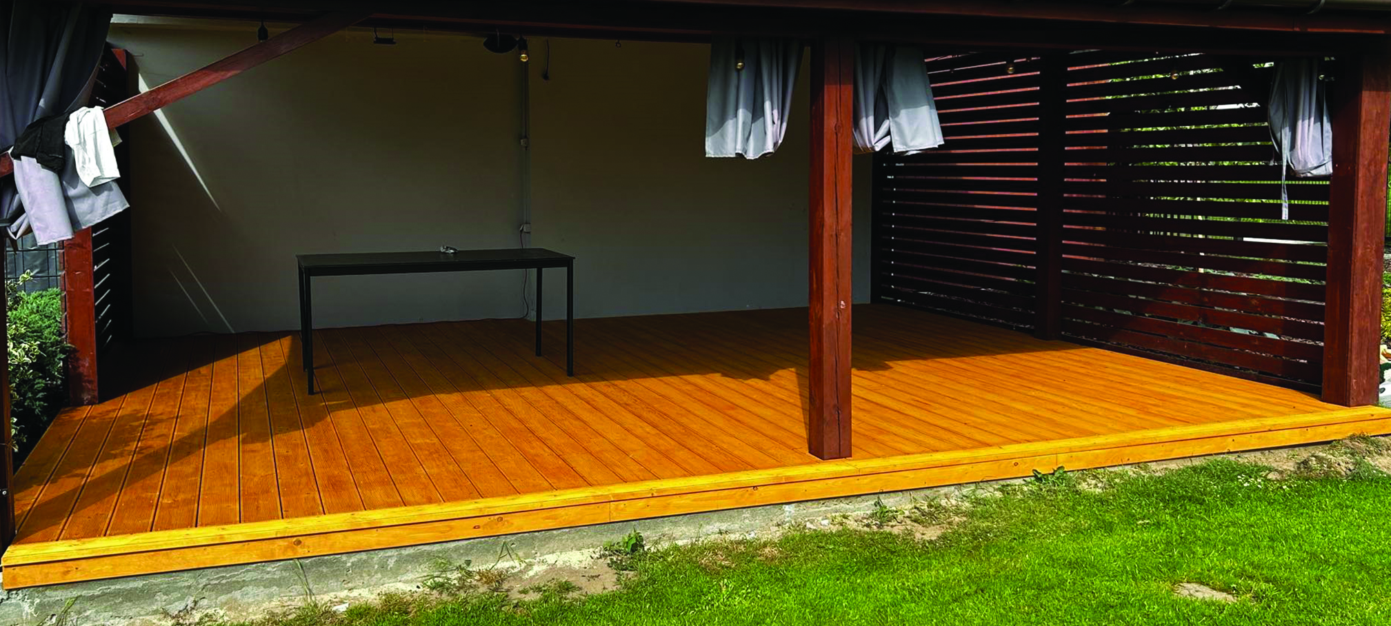 NASZE REALIZACJEZrealizowane projekty Projekt i wykonanieTaras z zadaszeniemTaras z zadaszeniem z poliwęglanu litego. Konstrukcja wykonana z suszonego drewna świerkowego oraz deski modrzewiowej. Projekt i wykonanieTaras modrzewiowyProjekt i wykonanie tarasu z deski modrzewiowej Wymiary: 780 cm x 400 cm Projekt i wykonanieElewacja z drewnaElewacja domku letniskowego wykonana z surowej heblowanej deski jodłowej. Projekt i wykonaniePergolaProjekt i wykonanie pergoli z lamelami przesuwnymi.Wymiary: 500 cm x 350 cm Projekt i wykonanieDomek letniskowyDomek letniskowy w Koszarawie, konstrukcja szkieletowa z drewna C24 o powierzchni użytkowej 67m2 (45m2 + antresola 22m2) Projekt i wykonaniePergola z tarasemPergola wykonana ze świerkowego drewna konstrukcyjnego z modrzewiowym tarasem oraz przesuwnymi lamelami.Wymiary: 460 cm x 480 cm Projekt i wykonaniePergolaPergola wykonana z klejonego drewna konstrukcyjnego.Wymiary: 515 cm x 374 cm Projekt i wykonanieSchody świerkoweProjekt i wykonanie schodów z deski świerkowej ryflowanej oraz balustradyWymiary: 330cm x 105cm Projekt i wykonanieTaras drewnianyProjekt i wykonanie dwóch tarasów z drewna sosnowego. Wymiary: 800 cm x 350 cm oraz 320 cm x 450 cm Projekt i wykonanieAltanaProjekt i wykonanie altany ogrodowej z dachem pokrytym gontem.Wymiary: 400 cm x 300 cm Projekt i wykonanieTaras kompozytowyProjekt i wykonanie tarasu z deski kompozytowej PACO 3D.Wymiary: 620 cm x 425 cm Projekt i wykonanieTarasWykonanie tarasu z deski świerkowej ryflowanej. Wymiary: 650cm x 505 cm Projekt i wykonanieDomek ogrodowyProjekt i wykonanie domku ogrodowego z drewutniąWymiary: 770cm x 260 cm Projekt i wykonanieWiata samochodowaProjekt i wykonanie wiaty samochodowej z dachem pokrytym blachą trapezową.Wymiary: 600 cm x 500 cm