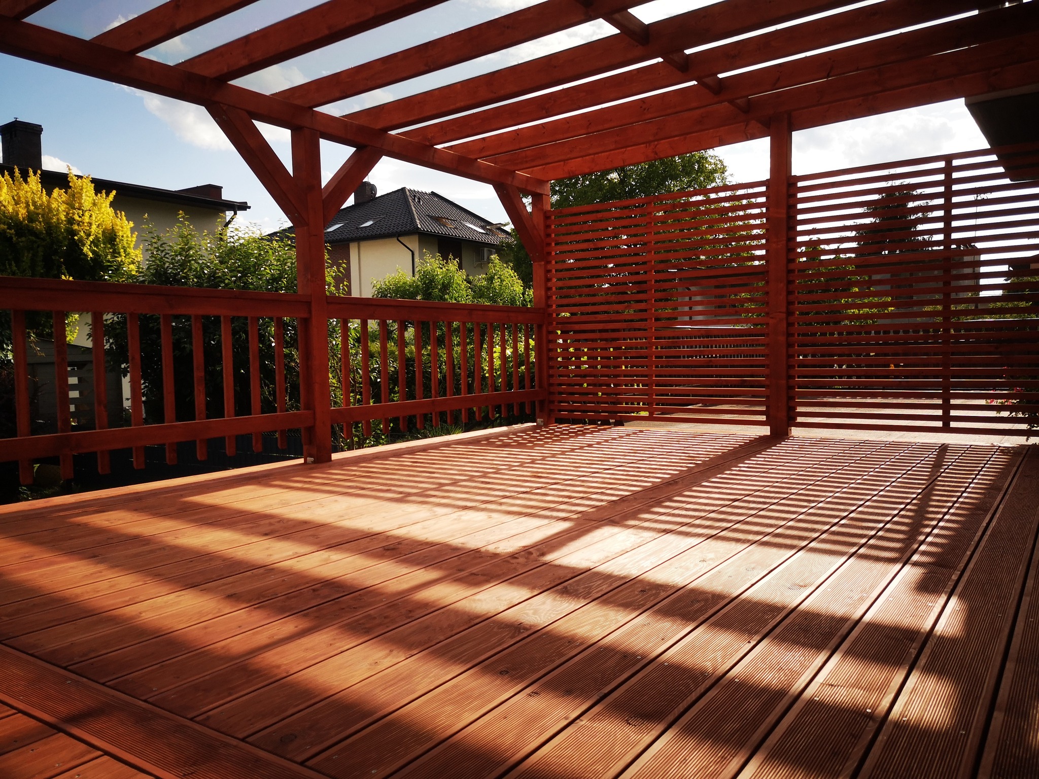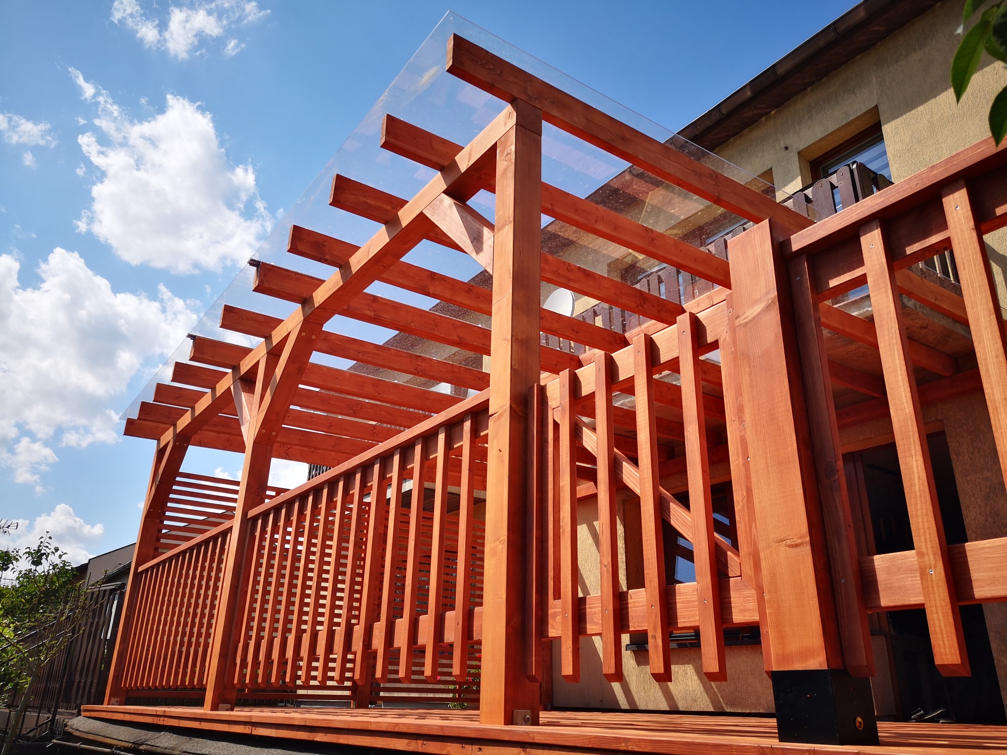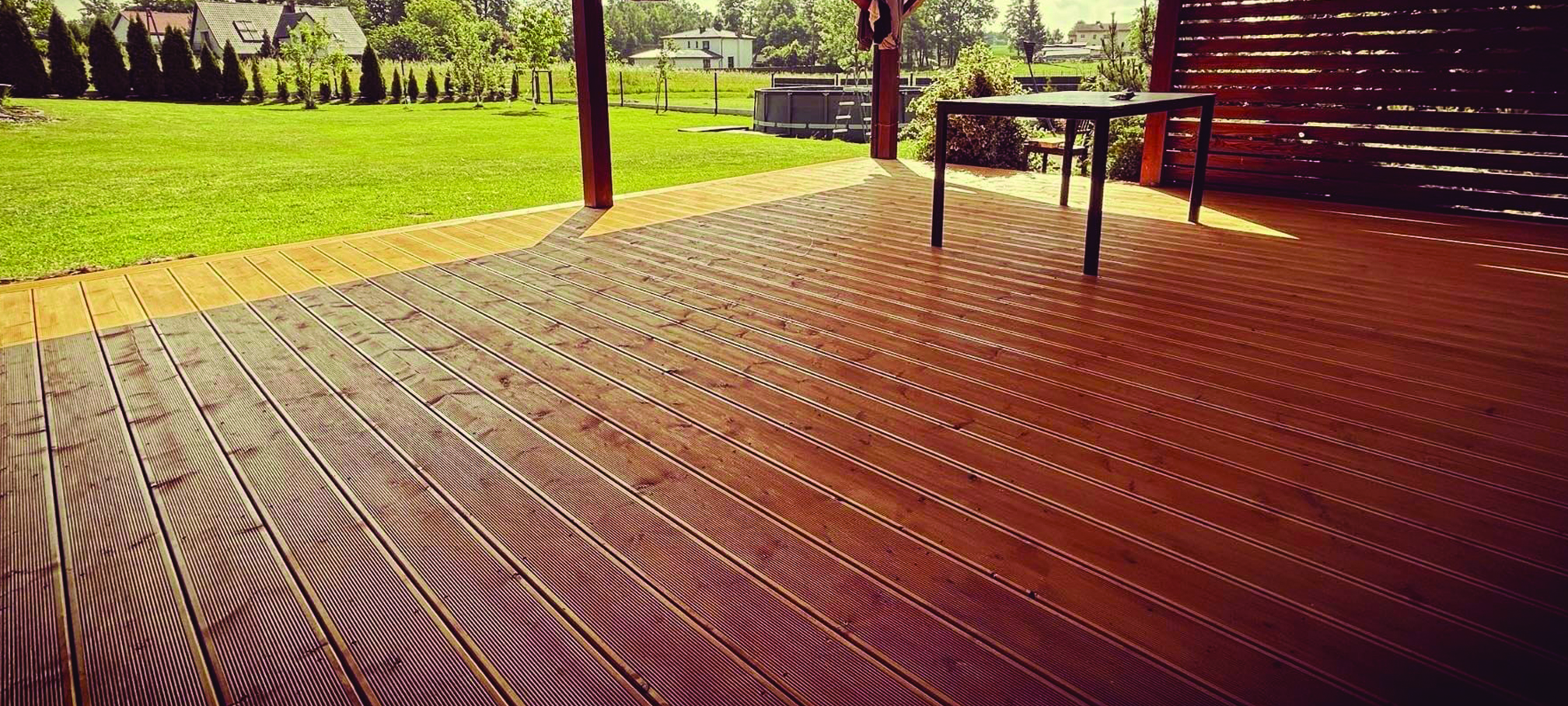 NASZE REALIZACJEZrealizowane projekty Projekt i wykonanieTaras z zadaszeniemTaras z zadaszeniem z poliwęglanu litego. Konstrukcja wykonana z suszonego drewna świerkowego oraz deski modrzewiowej. Projekt i wykonanieTaras modrzewiowyProjekt i wykonanie tarasu z deski modrzewiowej Wymiary: 780 cm x 400 cm Projekt i wykonanieElewacja z drewnaElewacja domku letniskowego wykonana z surowej heblowanej deski jodłowej. Projekt i wykonaniePergolaProjekt i wykonanie pergoli z lamelami przesuwnymi.Wymiary: 500 cm x 350 cm Projekt i wykonanieDomek letniskowyDomek letniskowy w Koszarawie, konstrukcja szkieletowa z drewna C24 o powierzchni użytkowej 67m2 (45m2 + antresola 22m2) Projekt i wykonaniePergola z tarasemPergola wykonana ze świerkowego drewna konstrukcyjnego z modrzewiowym tarasem oraz przesuwnymi lamelami.Wymiary: 460 cm x 480 cm Projekt i wykonaniePergolaPergola wykonana z klejonego drewna konstrukcyjnego.Wymiary: 515 cm x 374 cm Projekt i wykonanieSchody świerkoweProjekt i wykonanie schodów z deski świerkowej ryflowanej oraz balustradyWymiary: 330cm x 105cm Projekt i wykonanieTaras drewnianyProjekt i wykonanie dwóch tarasów z drewna sosnowego. Wymiary: 800 cm x 350 cm oraz 320 cm x 450 cm Projekt i wykonanieAltanaProjekt i wykonanie altany ogrodowej z dachem pokrytym gontem.Wymiary: 400 cm x 300 cm Projekt i wykonanieTaras kompozytowyProjekt i wykonanie tarasu z deski kompozytowej PACO 3D.Wymiary: 620 cm x 425 cm Projekt i wykonanieTarasWykonanie tarasu z deski świerkowej ryflowanej. Wymiary: 650cm x 505 cm Projekt i wykonanieDomek ogrodowyProjekt i wykonanie domku ogrodowego z drewutniąWymiary: 770cm x 260 cm Projekt i wykonanieWiata samochodowaProjekt i wykonanie wiaty samochodowej z dachem pokrytym blachą trapezową.Wymiary: 600 cm x 500 cm